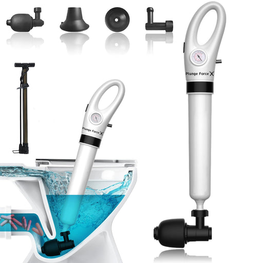 View full detailsPLUNGE FORCE X™ Toilet Plunger,High Pressure Air Drainage Injector, Pneumatic Sewer Piston with Visual Air Pressure Gauge,Bathrooms, Sinks, Floor Drains, Kitchens, and Plumbing Clogs